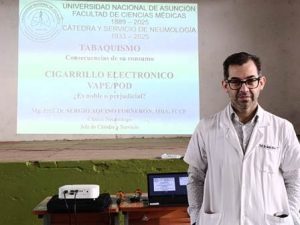 En el marco del plan de extensión universitaria, la Cátedra y Servicio de Neumología de la Facultad de Ciencias Médicas de la UNA, Hospital de Clínicas, realizó una jornada educativa sobre los riesgos del tabaquismo y el uso del cigarrillo electrónico. La actividad se llevó a cabo este lunes 27 en el Colegio Nacional Fernando de la Mora, con participación de más de 1.000 alumnos. La charla fue impartida por estudiantes de la carrera de medicina, así como de especialistas y médicos residentes de la Cátedra, y se desarrolló en el turno mañana; se prevé replicar en el turno tarde para alcanzar a la mayor cantidad de adolescentes.