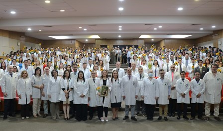La Facultad de Ciencias Médicas de la Universidad Nacional de Asunción llevó a cabo la tradicional “Entrega de bata blanca a los estudiantes del rotatorio clínico preprofesional supervisado de la carrera de medicina, promoción 2025”. La ceremonia destaca el simbolismo de la bata blanca en la medicina, que representa pureza y confianza para los pacientes, lo que los compromete con su profesión y a que mantengan valores éticos y de responsabilidad.