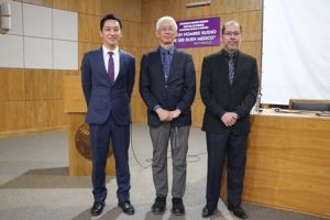 El profesor Makoto Mo, presidente de la Sociedad Japonesa de Flebología y actual vicepresidente de la Unión Mundial de Flebolinfología, disertó sobre la historia del tratamiento de las várices en Japón, la trombosis venosa profunda y el tromboembolismo pulmonar. Expresó su orgullo por compartir sus conocimientos con los profesionales y estudiantes de la FCM-UNA.