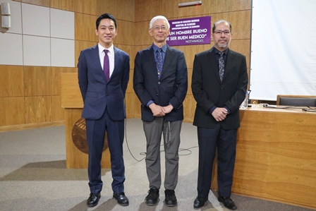 En conmemoración al Día Mundial de la Trombosis, la Facultad de Ciencias Médicas de la Universidad Nacional de Asunción, recibió la visita de los distinguidos profesores Makoto Mo y Takahiro Imai, reconocidos especialistas japoneses en várices y enfermedades venosas, quienes ofrecieron una conferencia magistral en el Auditorio del quinto piso del Hospital de Clínicas.